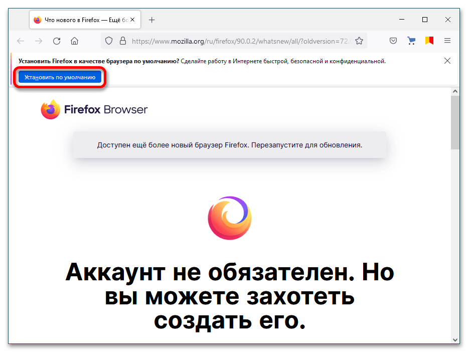 - Откройте веб-обозреватель, при первом запуске обычно появляется окно о необходимости назначить конкретный браузер программой по умолчанию.