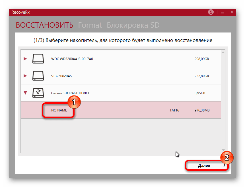 - В окне программы выбираем нашу флешку – кликаем «Далее».
