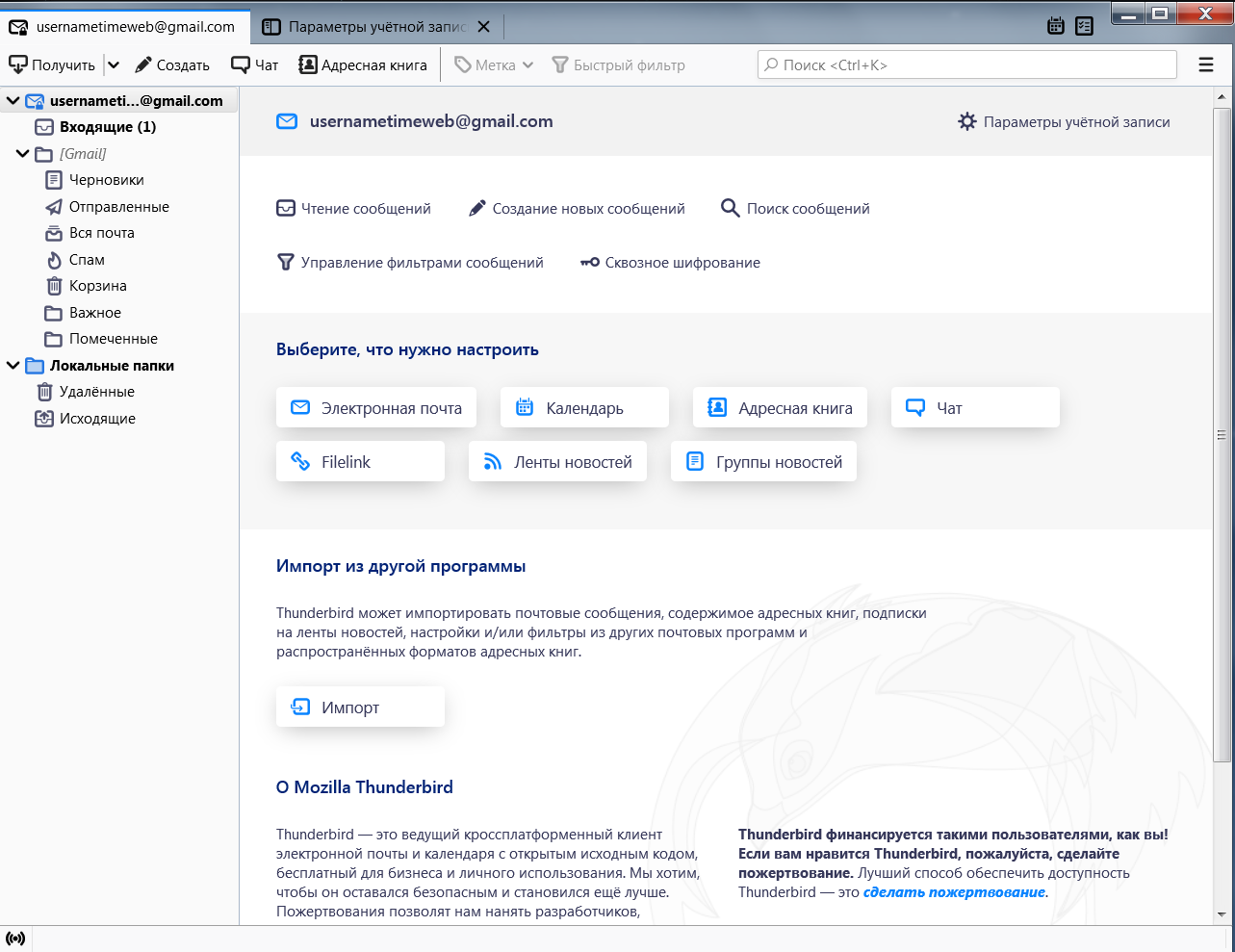 Загрузите и установите Thunderbird, если вы ещё этого не сделали.