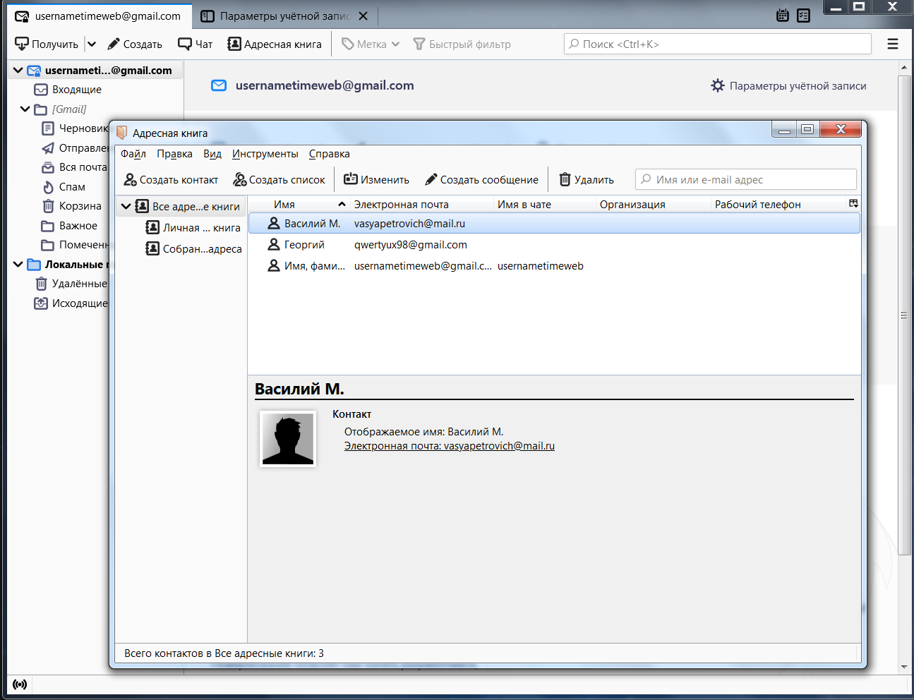 Чтобы импортировать контакты Windows в Thunderbird, необходимо экспортировать контакты в файлы vCard (формат .vcf) и импортировать файл в Thunderbird.