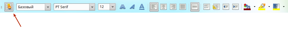 - Нажмите на значок Стили, расположенной с левого края панели форматирования или выберите пункт меню Формат ‣ Стили или нажмите клавишу на клавиатуре.
