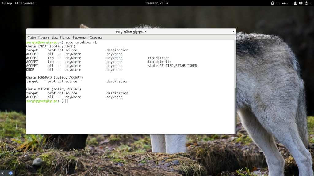 - Для начала стоит проверить наличие iptables в вашей ОС. Для этого делаем следующую команду в консоли: iptables -list. После этого вы получите необходимые вами данные.