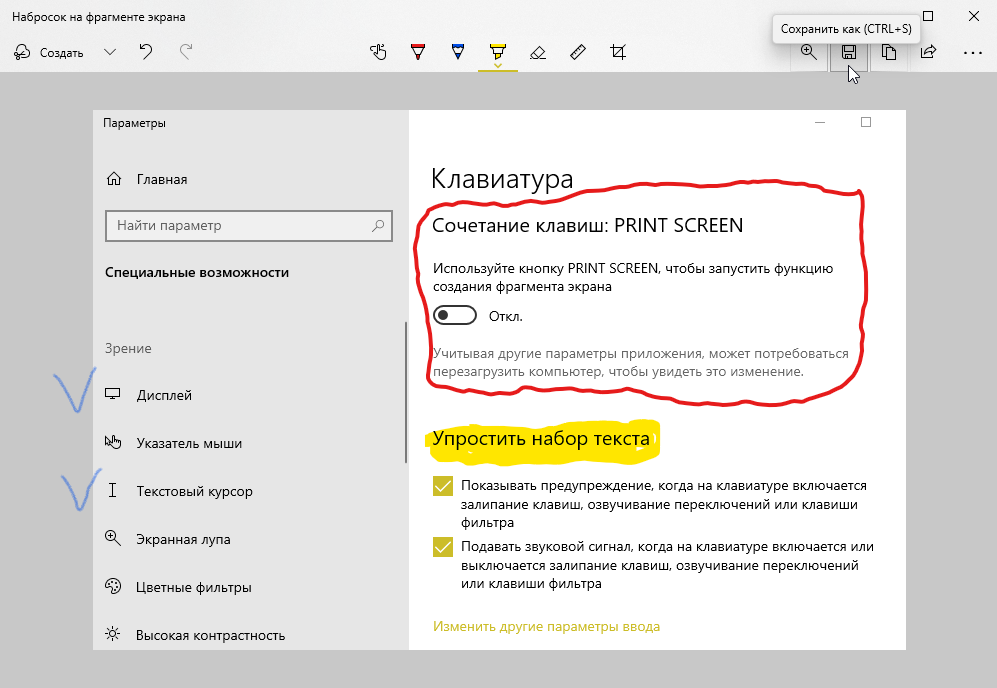 Как и Paint, в «Ножницы» допускается редактирование скриншота. Правда, интерфейс редактирования ограничен минимальным набором функций.