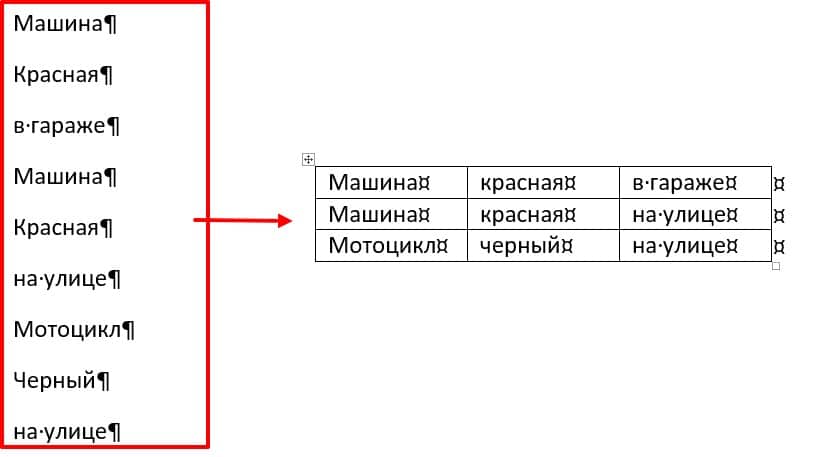 - Выделите все абзацы для преобразования.