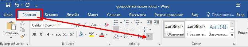 Чтобы сделать табуляцию и знаки абзацев видимыми, просто щелкните значок «Отобразить все знаки» на вкладке «Главная». Еще одно нажатие на этот значок скрывает эти отметки.