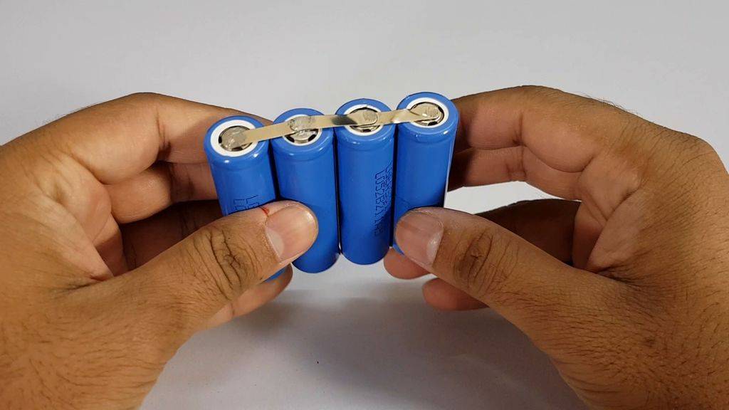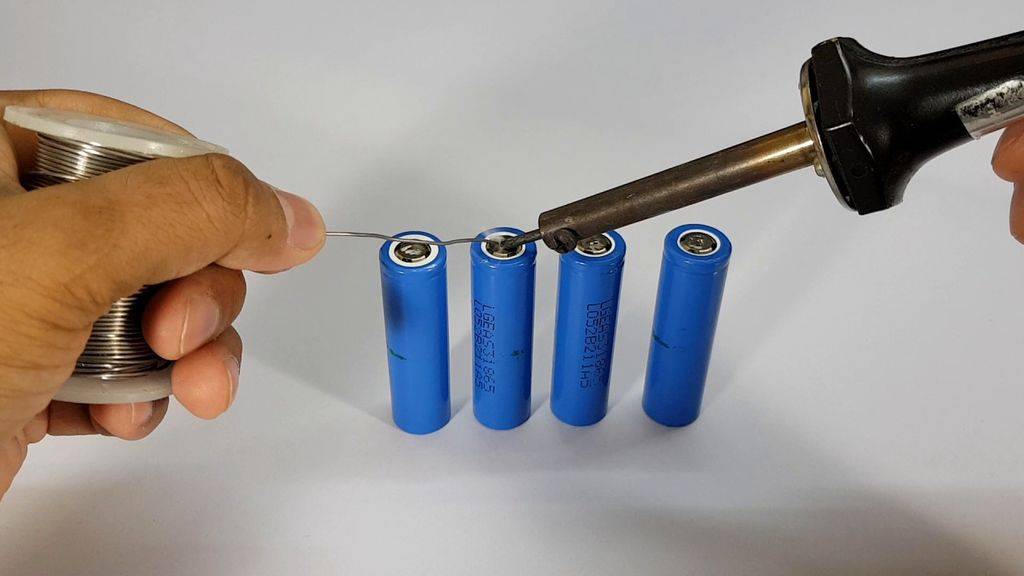 - Приложите контактные перемычки к контактам аккумуляторов и припаяйте их с помощью паяльника.