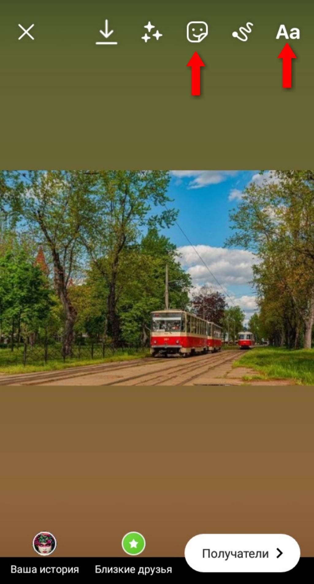 Наиболее удобный вариант — встроенный редактор. Войдите в свой аккаунт Instagram, откройте сторис и разместите любое изображение.