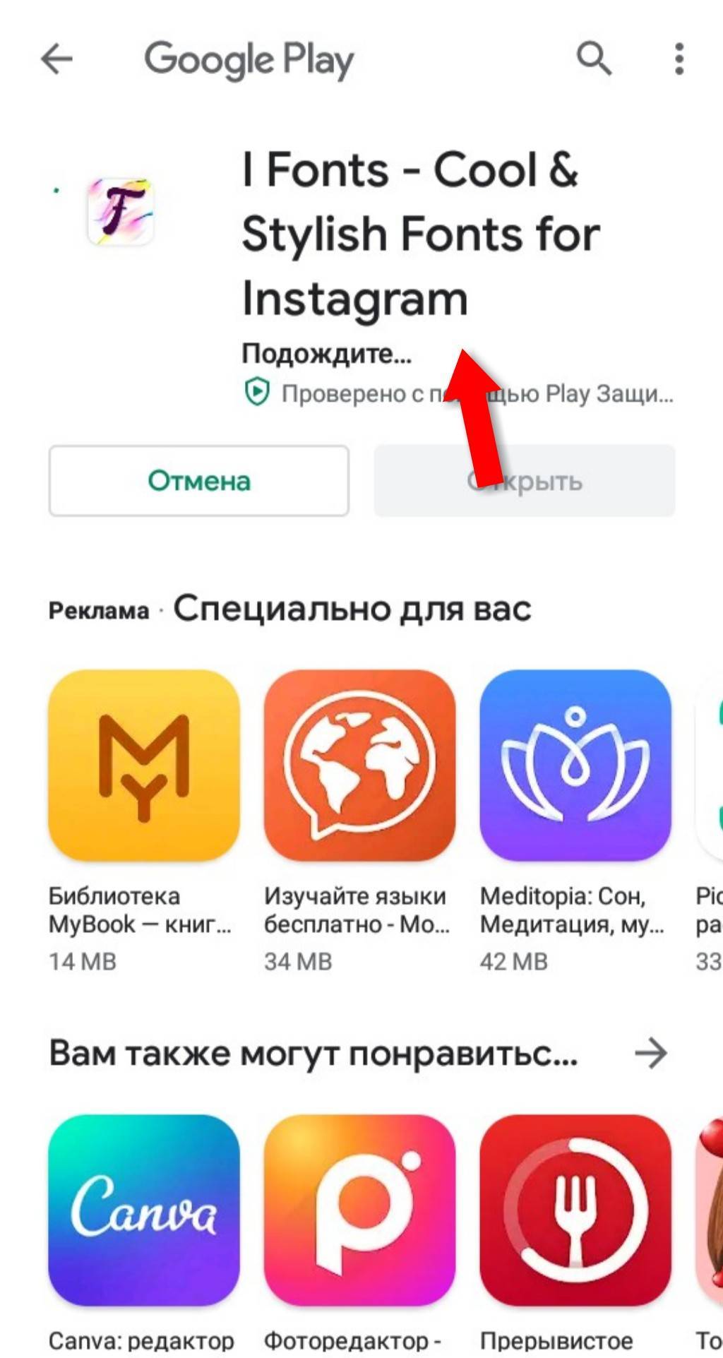 - Если вы не ошиблись в символах, его название появится в левой части окна. Щелкните по нему.