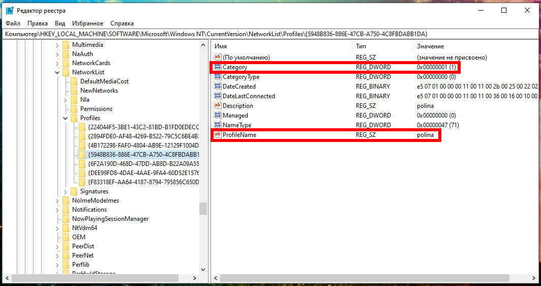 Тип сети также можно изменить в редакторе реестра. Для этого запустите regedit.exe и перейдите к следующему ключу: HKEY_LOCAL_MACHINE\SOFTWARE\Microsoft\Windows NT\CurrentVersion\NetworkList\Profiles. Этот раздел реестра содержит профили всех сетевых подключений.