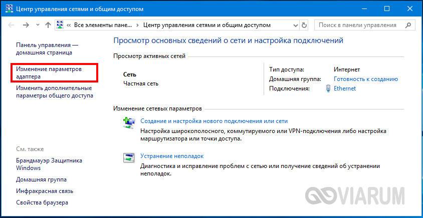 Вернитесь в Центр управления сетями, нажмите «Изменение параметров адаптера», зайдите в свойства вашего адаптера и проверьте, установлена ли птичка в чекбоксе «Общий доступ к файлам и принтерам…». Флажок в пункте IP версии 6 (TCP/IPv6) тоже должен быть установлен.