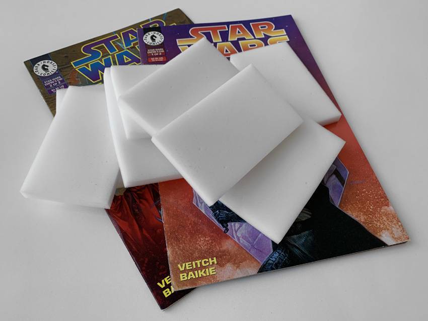 Сначала я исследовал местные магазины, а когда не нашел ничего толкового, заказал упаковку меламиновых губок с AliExpress.