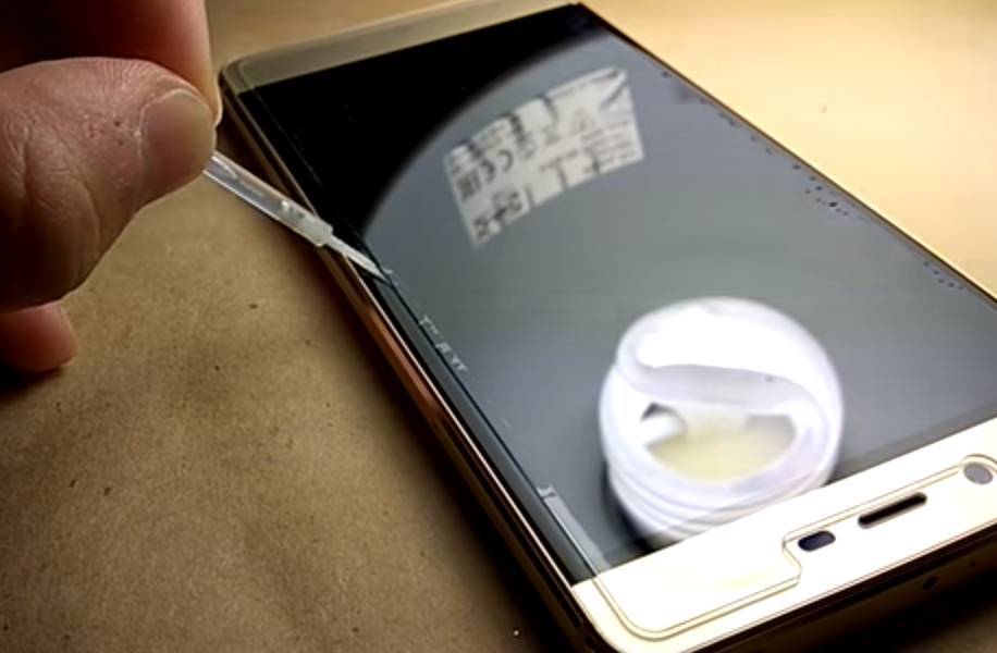 Чтобы поклейка защитного стекла была более комфортной, в продаже можно встретить гель для заполнения воздушных пузырьков. Часто они образуются по краю.