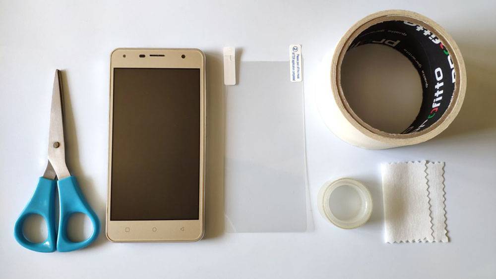 Перед тем, как клеить защитное стекло или плёнку на смартфон, нужно провести небольшую подготовку. Работа эта требует собранности, твёрдых рук и хорошего глазомера. Самостоятельно установить стекло на смартфон нам поможет следующий инвентарь: