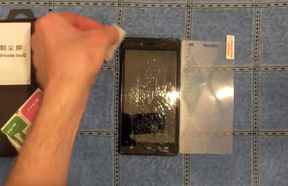 Иногда в комплекте со стеклом идет специальная наклейка. Ее нужно несколько раз приклеить и отодрать от дисплея, чтобы удалить приставшую пыль.