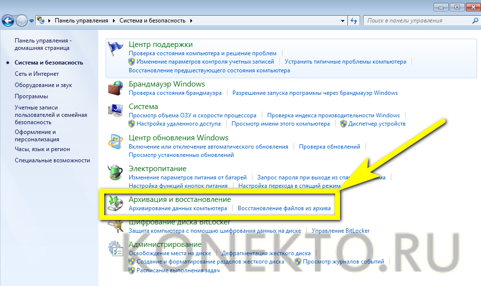 Отключить автоматическое создание копий можно в левой боковой панели «Архивации и восстановления».