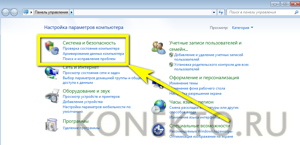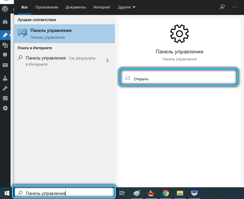 Включить компьютер или ноутбук, открыть меню «Пуск» и перейти в «Панель управления», расположенную в правом разделе окна.