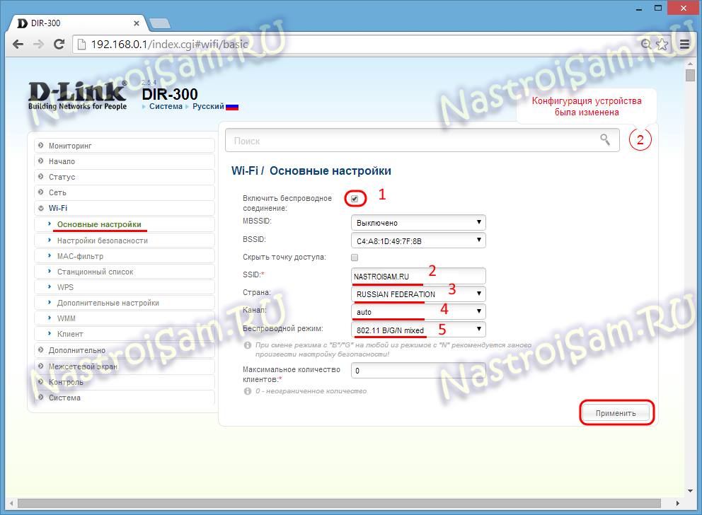 В списке «Беспроводной режим» надо поставить смешанный тип — 802.11 B/G/N mixed или 802.11 B/G mixed.