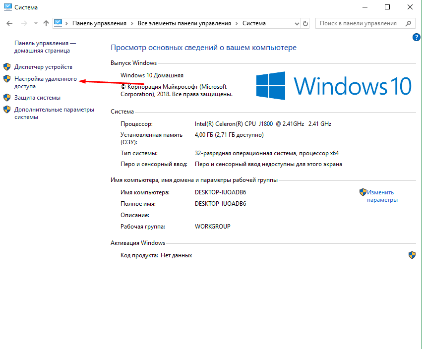 Для предоставления другим пользователям прав отправки запросов на подключение необходимо дать разрешение пользоваться технологией описанной выше. Для этого идём по пути “Панель управления” – “Система” (там мы брали имя ПК) и здесь открываем настройки удалённого доступа.