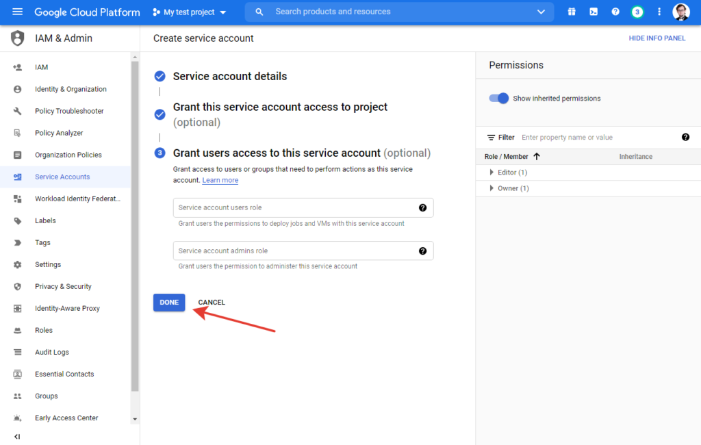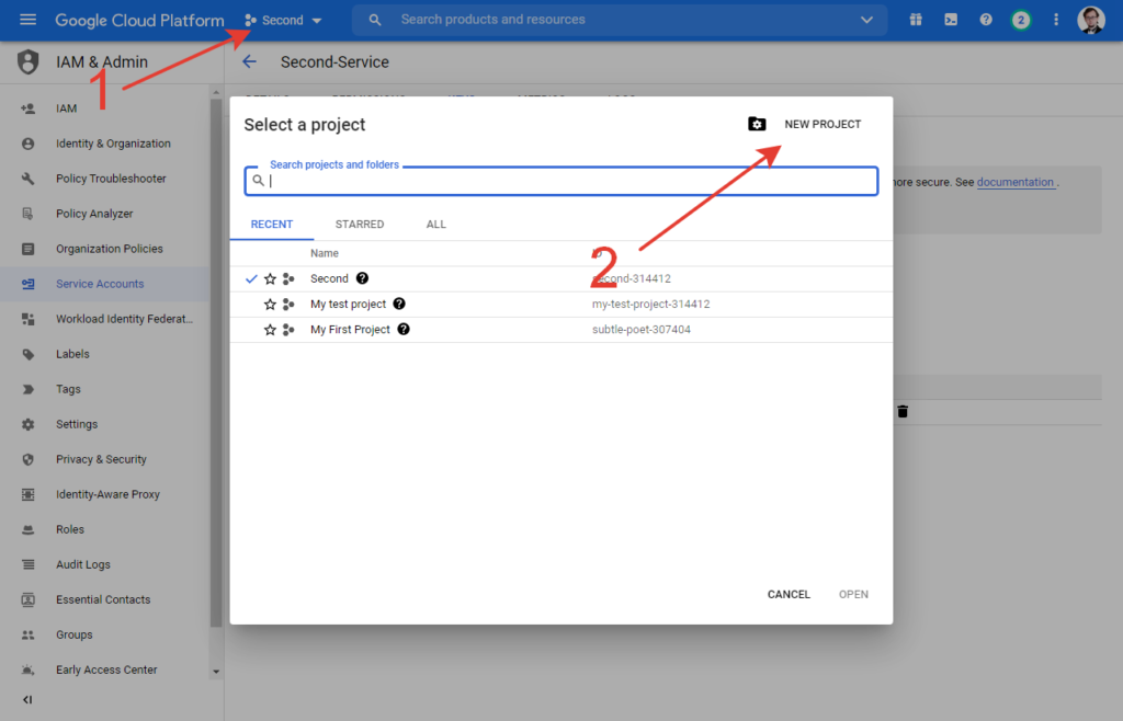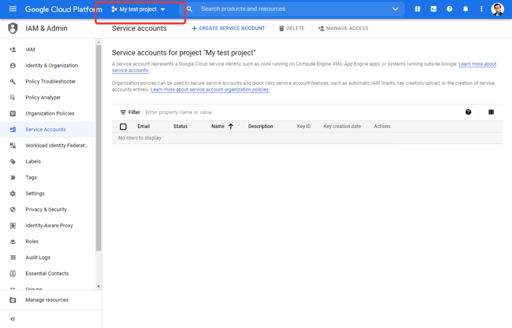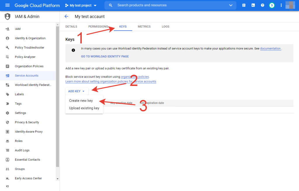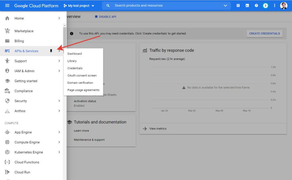 Слева в меню перейдите в “Credentials”. Нажмите на “Create Credentials”, в открывшемся меню выберите пункт Service account.