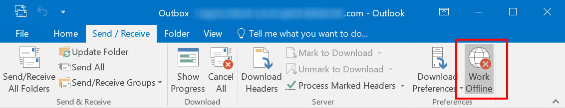 Outlook позволяет работать офлайн или онлайн. Перейдите в меню «Отправить / получить» и найдите параметр «Работа в автономном режиме» справа в группе «Настройки». Убедитесь, что вы случайно не выбрали эту опцию. В автономном режиме кнопка будет отображаться серым цветом, а в сети — нормально.