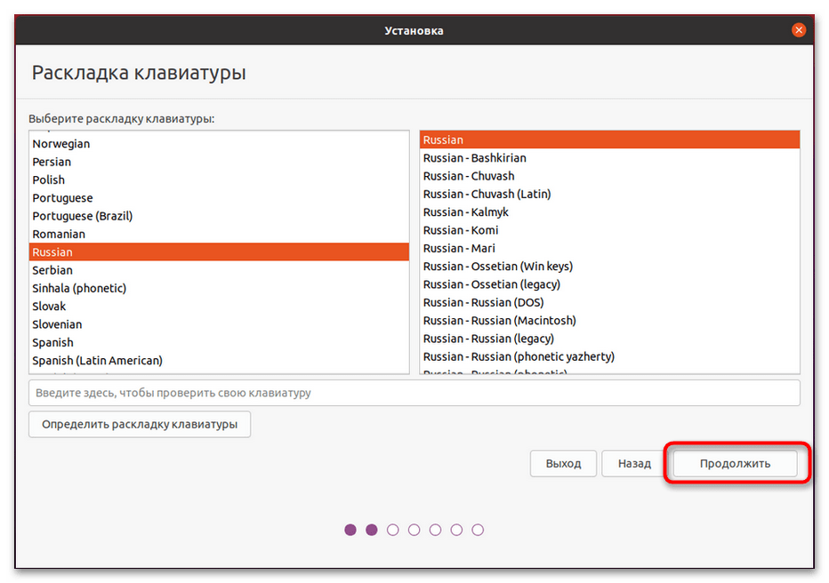 Укажите раскладку клавиатуры.