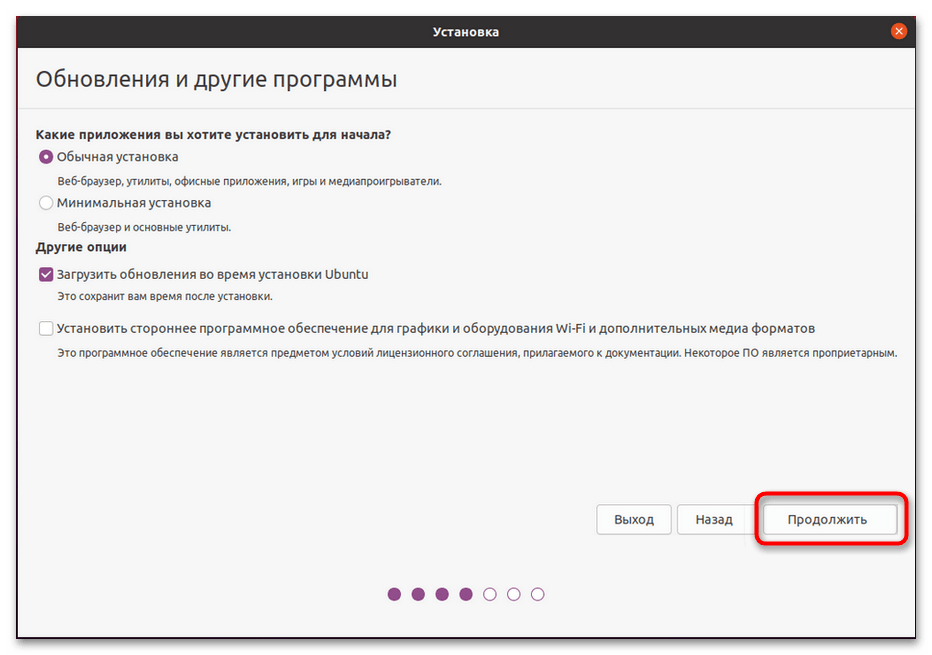 Также в меню предлагается установка стороннего программного обеспечения, если оно встроено в дистрибутив (кодеков для воспроизведения звука и т.д.).