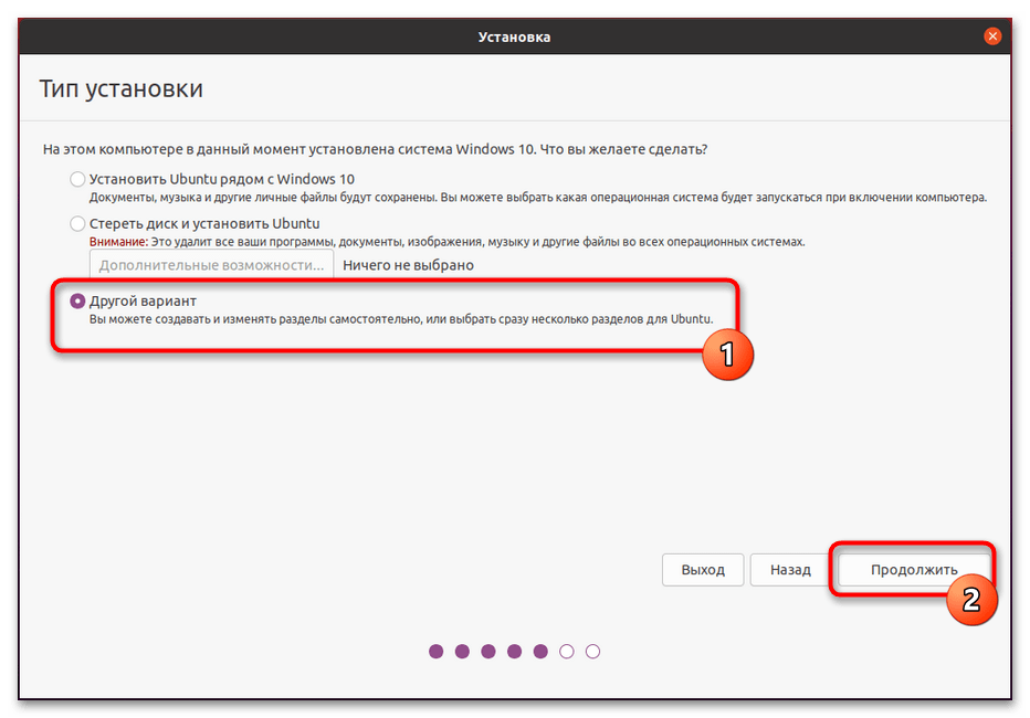 Тип установки задайте «Другой вариант» и нажмите «Продолжить».