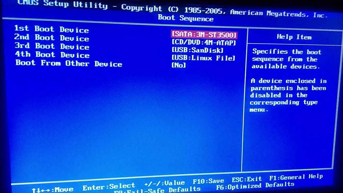 Изменение приоритетности загрузки устройств.
