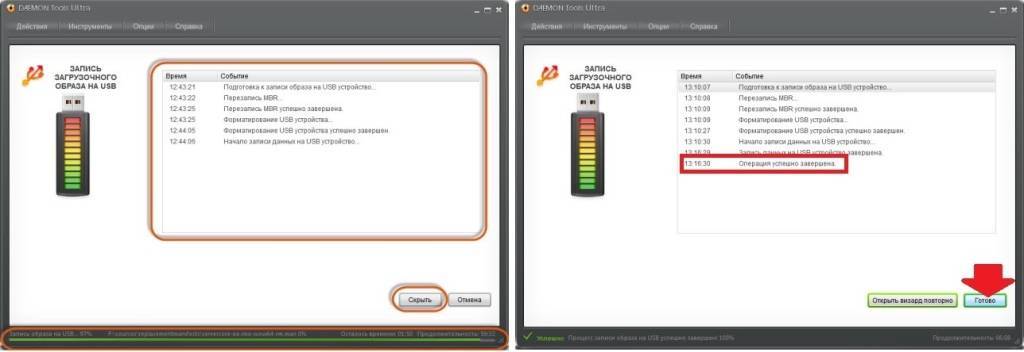 Далее задача о том, как создать загрузочную флешку из образа, полностью делегируется DAEMON Tools Ultra. Вам остается только подождать пару минут.