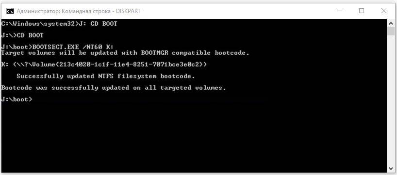 Процесс создания загрузочной флешки с помощью утилиты DISKPART следующий: