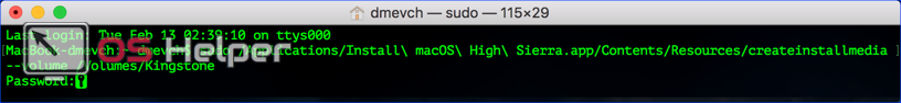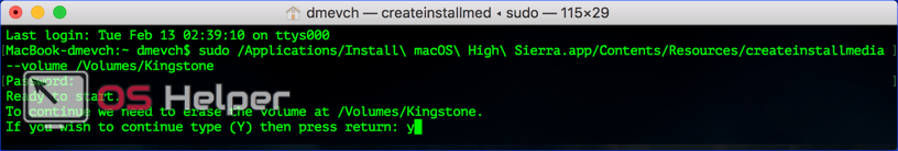 ШАГ 3 — Введите пароль администратора, когда вас попросят (в окне Терминала ваш пароль высвечиваться не будет, и будет казаться что вы вообще ничего не набираете — так и должно быть). После того как вы нажмете ENTER, у вас спросят подтверждение на очистку USB носителя — введите букву Y и еще раз нажмите ENTER.