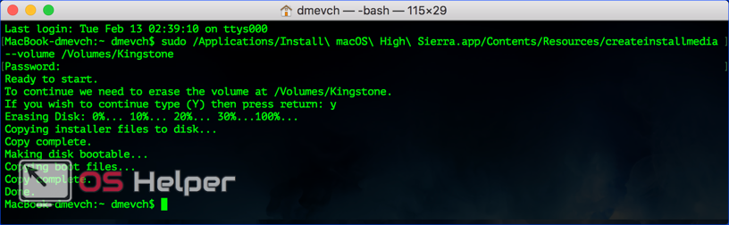 Процесс создания загрузочной флешки с OS X занимает около пяти минут, так что будьте терпеливы. После того как процесс завершится, появится соответствующее сообщение.