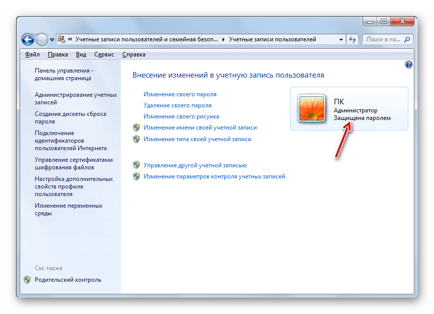 Наш рисунок на ярлычке изменился. Если вы решили удалить пароль, это довольно просто. Жмете по ссылочке «Удаление пароля»: