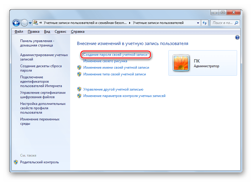 Вы увидите, какие учетные записи у вас есть. Выбираете учетную запись «Администратор», кликнув по ней.