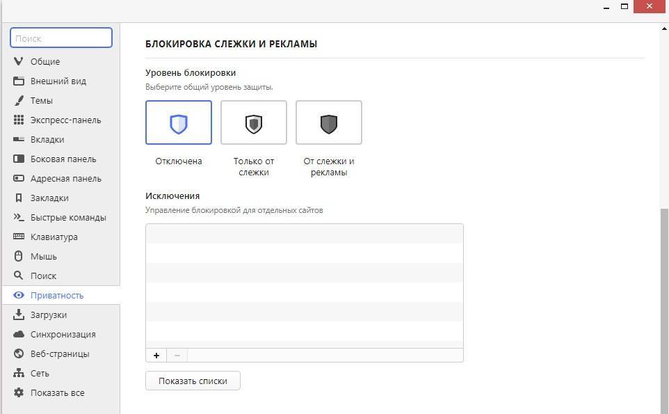 Включаем встроенный блокировщик рекламы через настройки в браузере Vivaldi. По умолчанию он отключен
