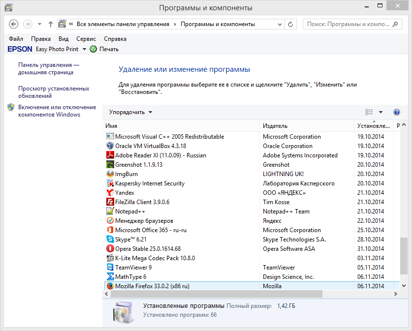 Возьмем для примера мой компьютер. В списке порядка 60 наименований ПО. Однако, посмотрев на дату, я вижу, что для 25 из этих программ значится дата установки еще в 2013 году, хотя последний раз Windows я переустанавливал совсем недавно. Это — предустановленные программы, такие есть на любом ноутбуке. Их мы вычеркиваем из списка подозреваемых. Двигаемся дальше. Еще 25 программ установлены 18, 19 и 20-го октября 2014 года. Это программы, которые я установил сразу после установки Windows. Несложная арифметика показывает, что в списке подозреваемых осталось всего-то пять программ. Вот именно среди них я и стал бы искать виновника, если бы у меня появилась реклама в браузере.