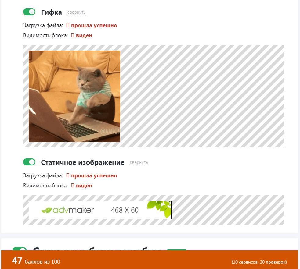Блокировщик отработал как надо: 100 баллов из 100. А гифки с котиком все же не хватает