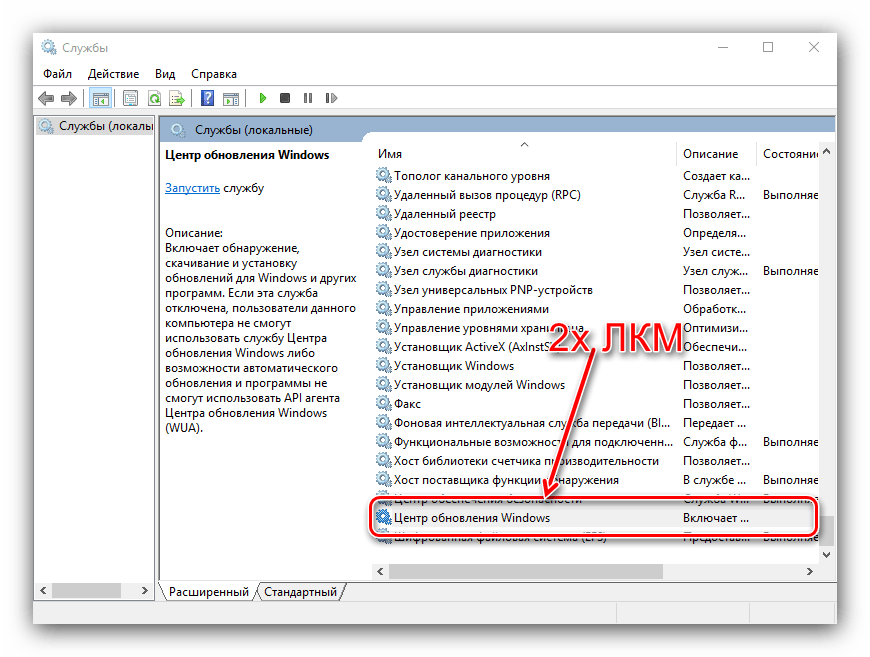 Далее найдите службу «Центр обновления Windows», затем также дважды кликните по ней ЛКМ и выполните действия из шага 4.