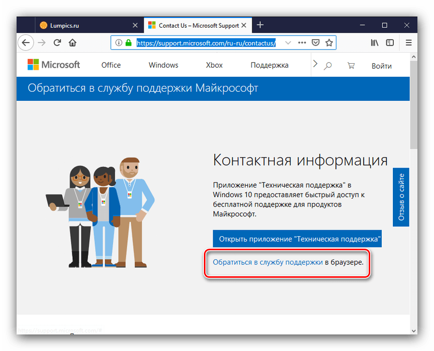 Способ 2: Обращение в техническую поддержку Microsoft
