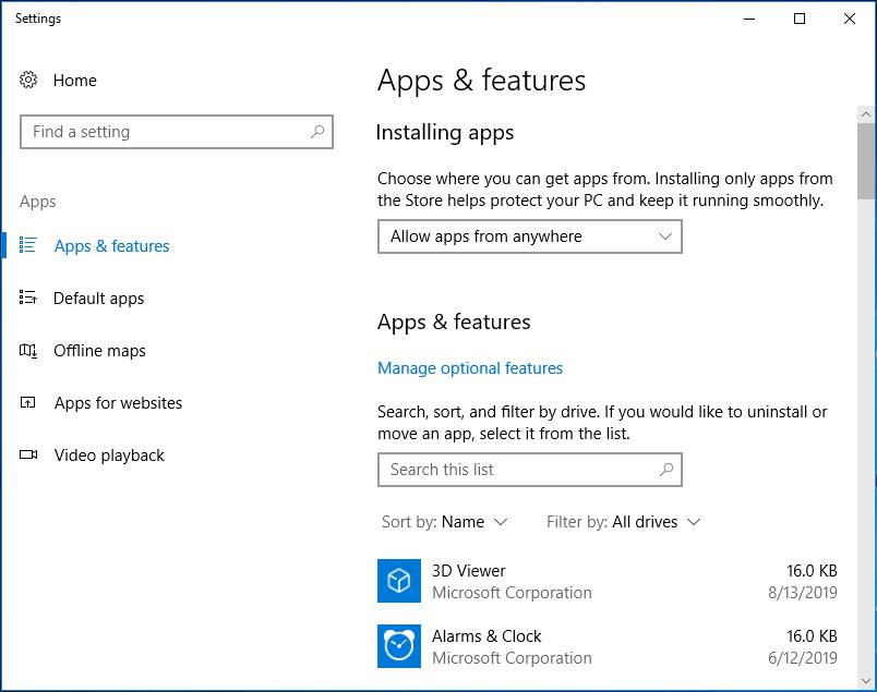 В обоих случаях открывается полный список установленных на компьютере программ. Здесь нужно найти Bing, однако название может быть представлено по-разному: