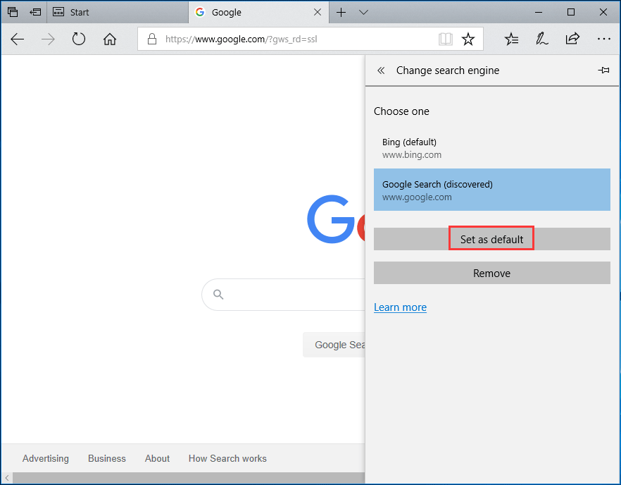Шаг 4. Выберите Google и нажмите Установить по умолчанию .