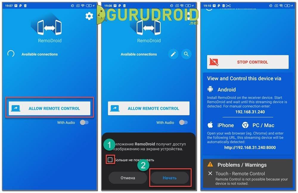 Кстати, для удобства можно открыть браузер на компьютере и ввести цифры с программы в адресную строку. Это позволит следить и управлять смартфоном с большого экрана.