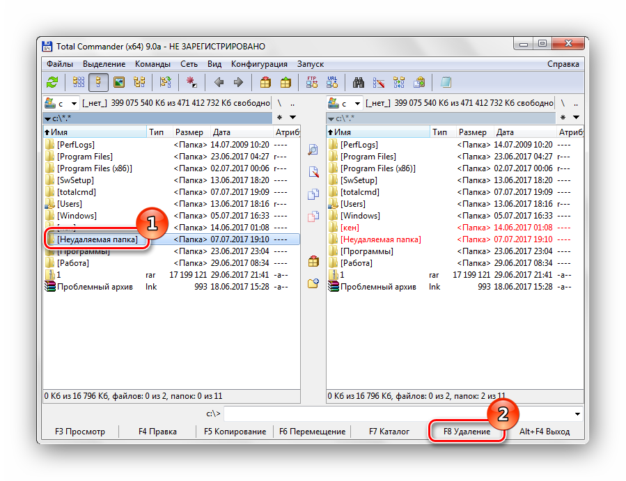 Способы удаления неудаляемых папок