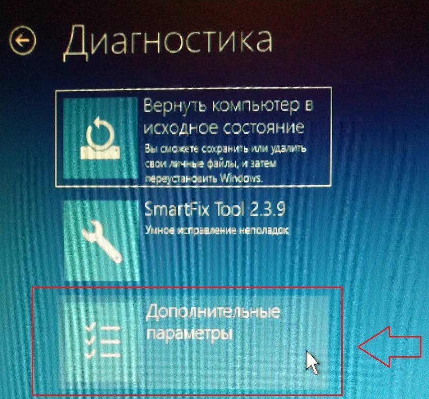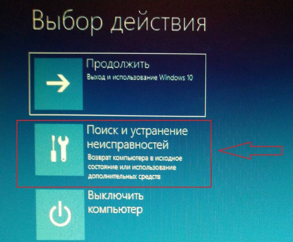 После перезагрузки, вам будет предложено выбрать варианты решения проблемы. Выбираем Поиск и устранение неисправностей: