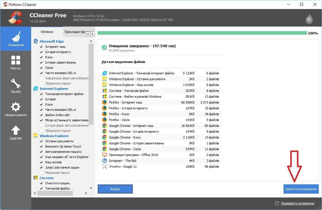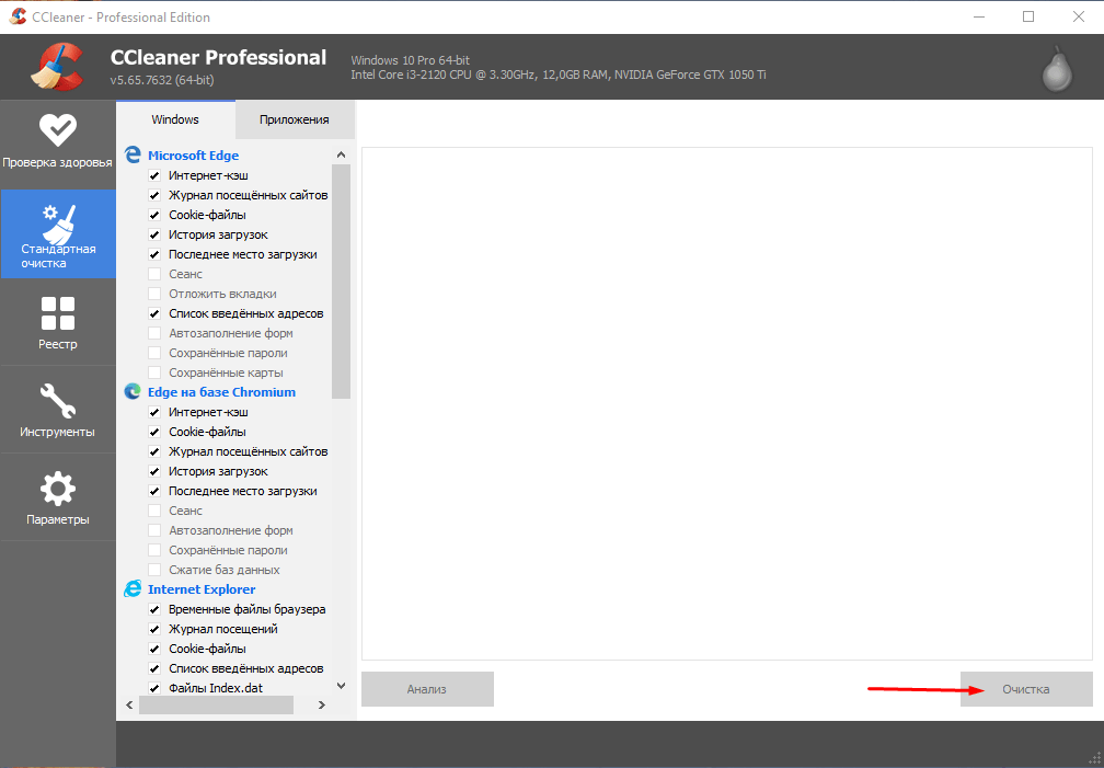 - Когда галочка поставлена, жмем «Очистка» в правом нижнем углу экрана уборщика.