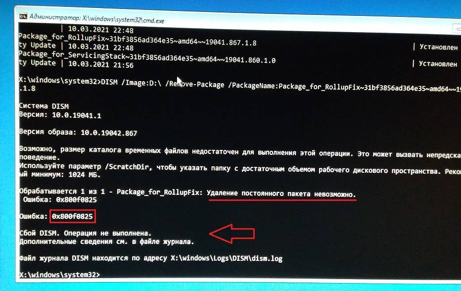 Заметка написана по горячему и содержит реальные скрины с устройства под управлением ОС Windows 10 версии 20H2, где не удалось удалить обновление КВ5000802 при помощи DISM.