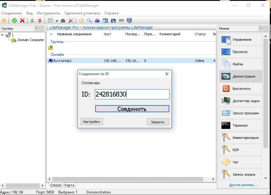 - При установке LiteManager Viewer указываем версию — Free или Pro, и, собственно, всё, можно выполнять подключение.