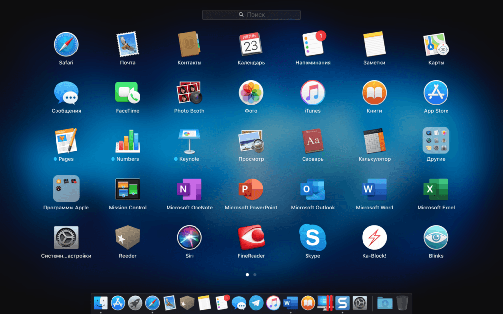 Рабочая панель — это как рабочий стол в других ОС, в Мас она называется «Launchpad».