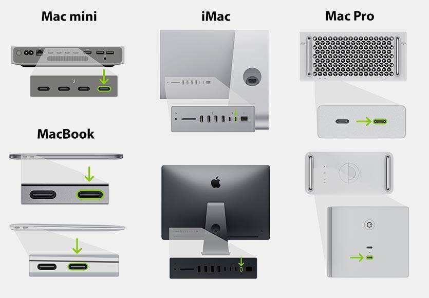 К какому порту Type-C нужно подключаться для восстановления прошивки T2