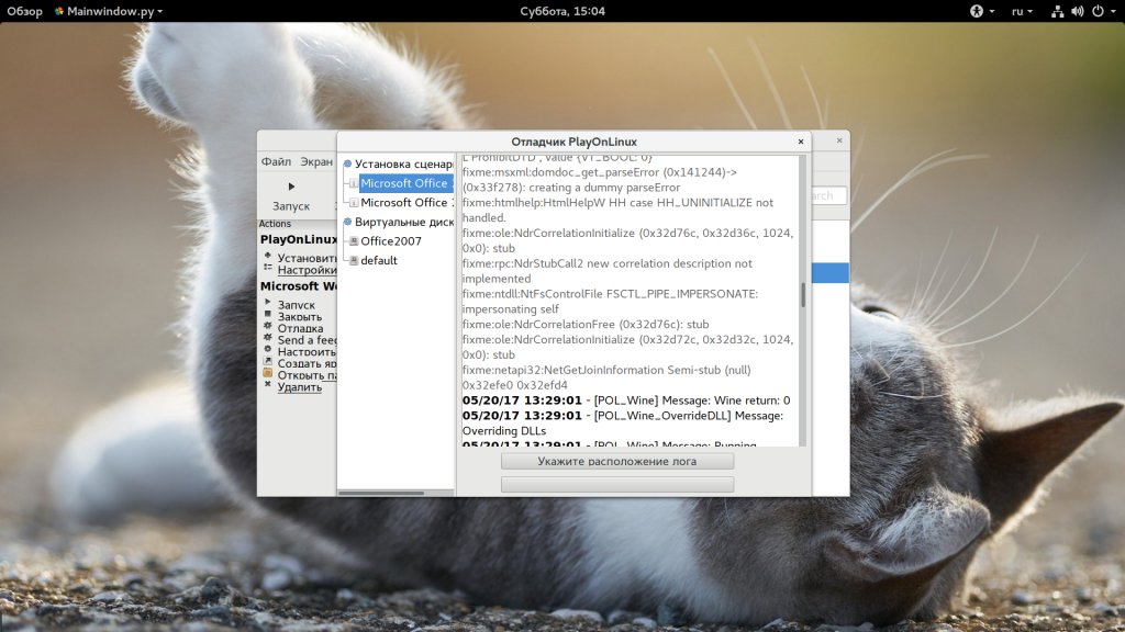 Если с программой возникли проблемы, то, возможно, вы захотите понять в чем причина. В этом вам помогут логи. Чтобы посмотреть логи по каждой программе откройте “Утилиты”, а затем “Отладчик PlayOnLinux”: